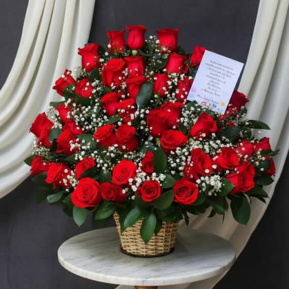 Roses mean love and romance, well, this I Want to Love You Floral Arrangement allows you to express that beautiful feeling, send this beautiful flower arrangement made on a wooden base, made up of